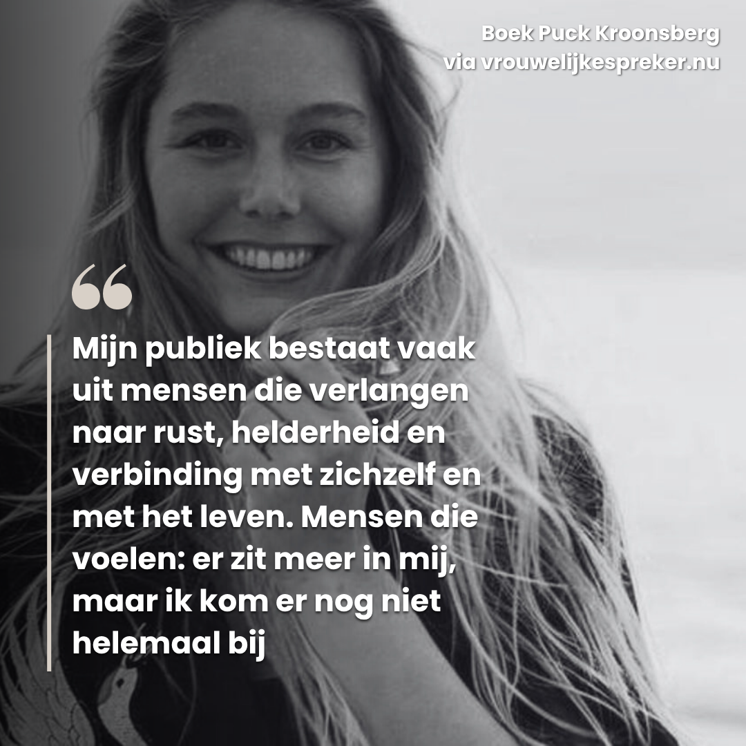 Puck Kroonsberg is spreker, coach en founder van Freedom Warrior & The Freedom Tribe. Vanuit haar eigen levenspad opgroeien met een vader met Schizofrenie, een burn-out op jonge leeftijd en een intens traject met een zeldzame vorm van kanker, begeleidt zij mensen in het terugkeren naar zichzelf.